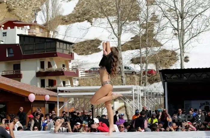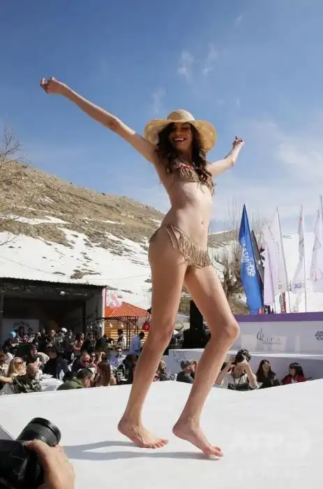 В Ливане на горнолыжном курорте Фарайи прошло ежегодное шоу «Лыжи и мода», в рамках которого состоялся показ нижнего белья от бренда Diamony. Полуобнаженные модели вмиг покорили зрителей, которые по достоинству оценили недешевые белье и самих девушек.