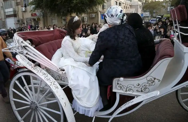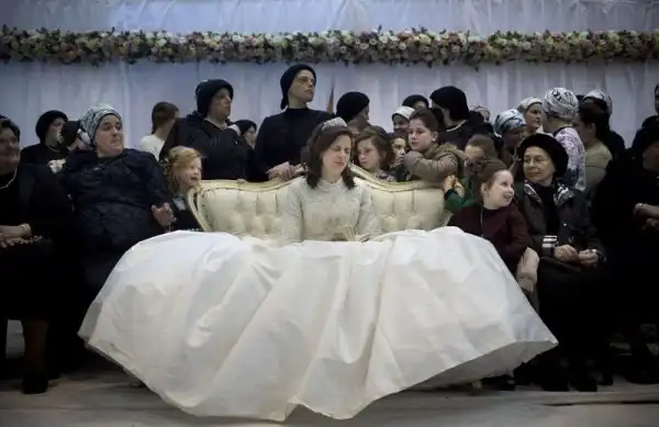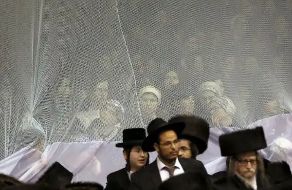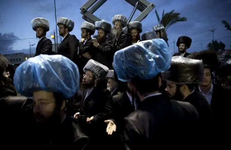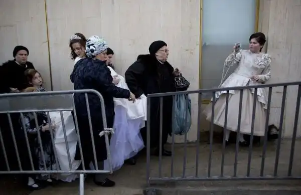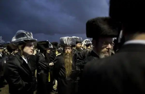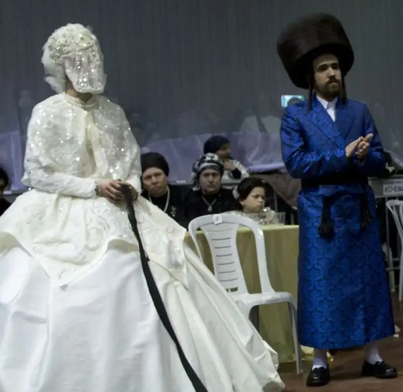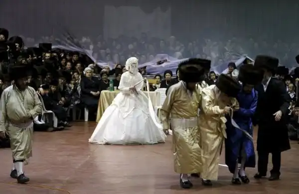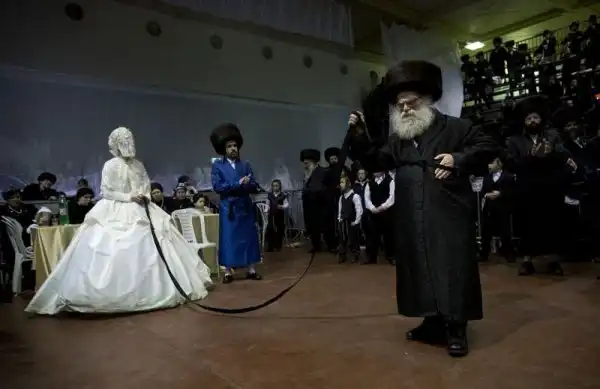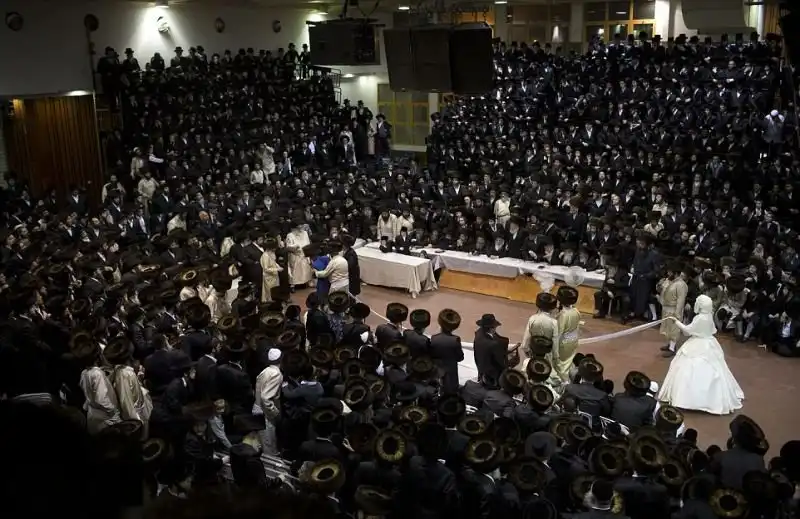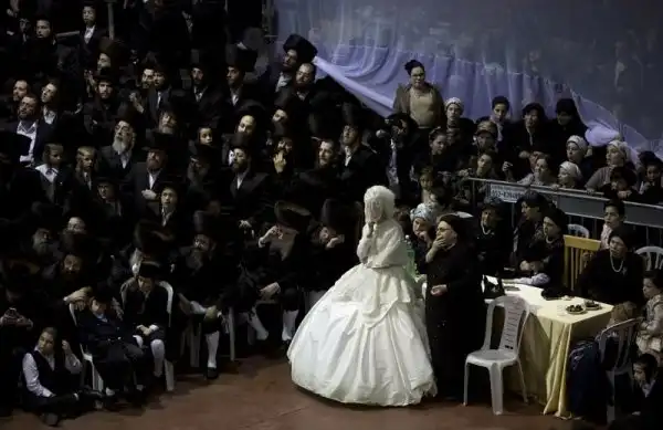 На крупнейшем курорте Израиля, городе Нетания, состоялось грандиозное празднество - свадьба внука раввина хасидской династии. На улице собрались тысячи людей, дабы посмотреть на церемонию бракосочетания, проводившуюся по древним обычаям, и поздравить молодоженов. Учитывая такую ораву гостей, неудивительно, что некоторые приглашенные заблаговременно запаслись биноклями. Примечательно, что предусмотрительные евреи даже пакеты с собой прихватили - прикрыть от дождя свой штраймл, то бишь головной убор для особо торжественных случаев.