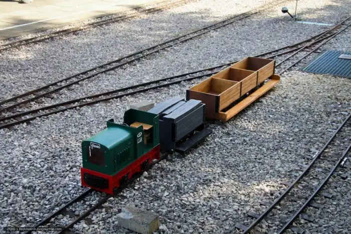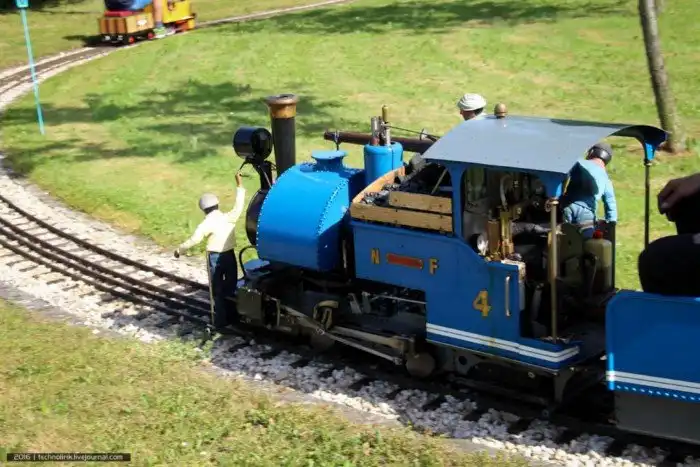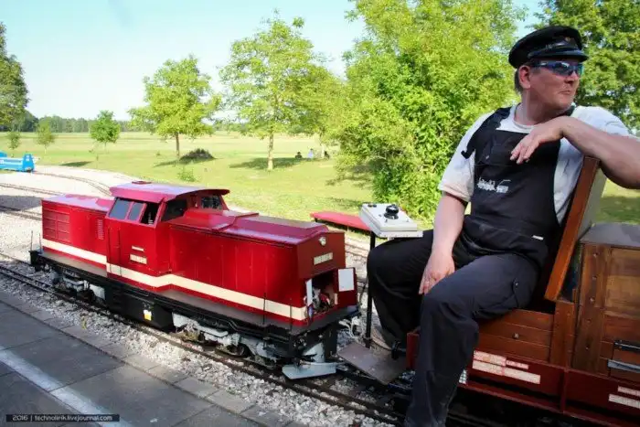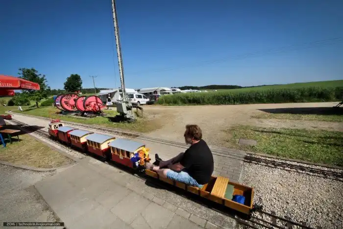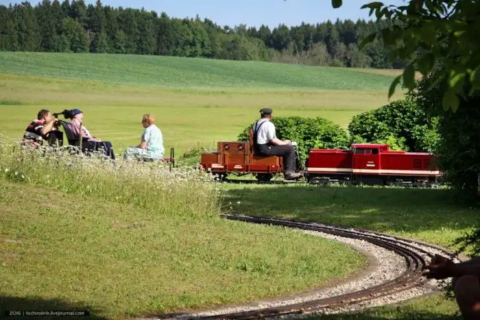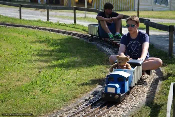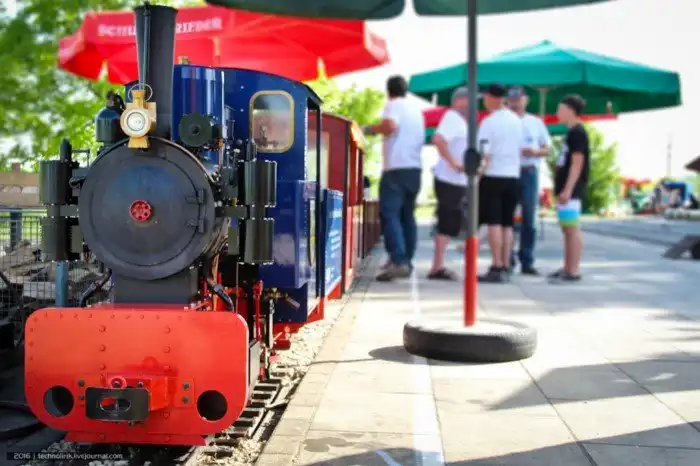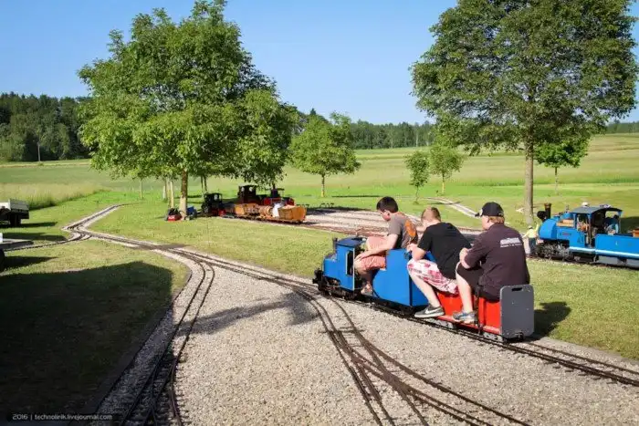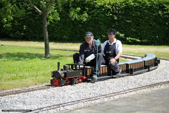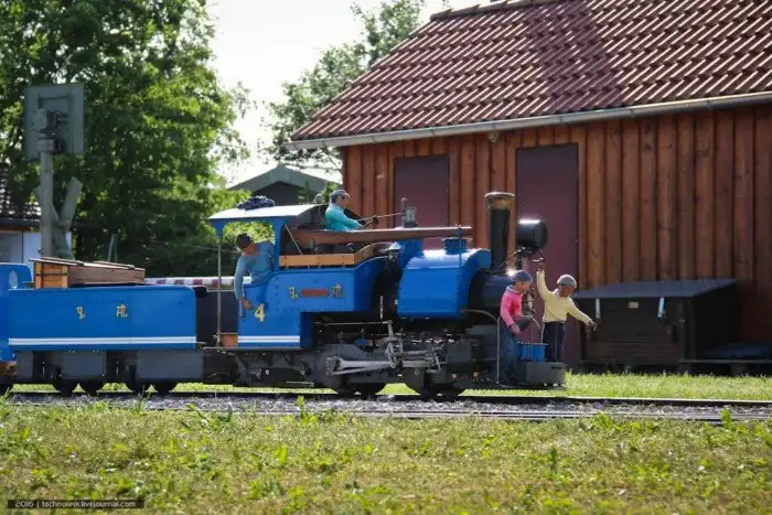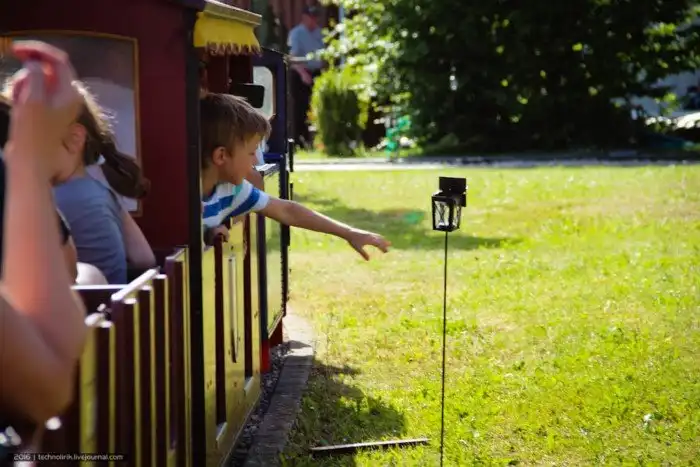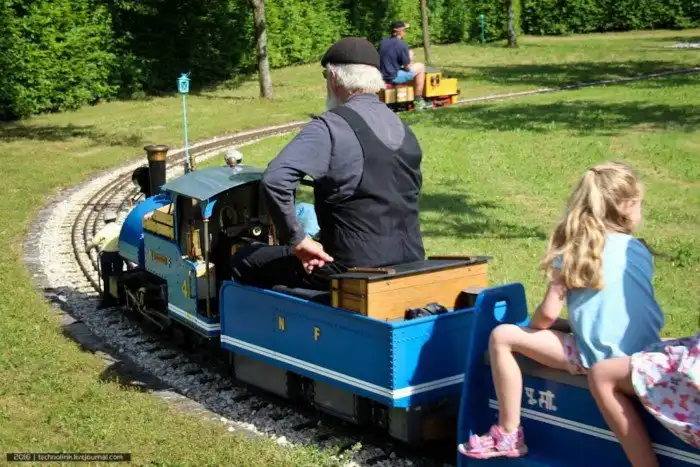С первого взгляда может показаться, что это обычная модельная железная дорога, только чуть увеличенных масштабов. Но подножки по сторонам от вагончиков выдают, что их предназначение чуть шире, чем просто радовать глаз.