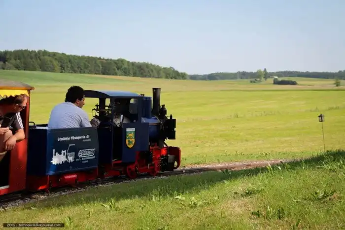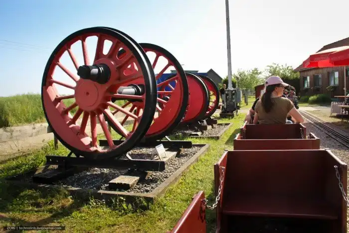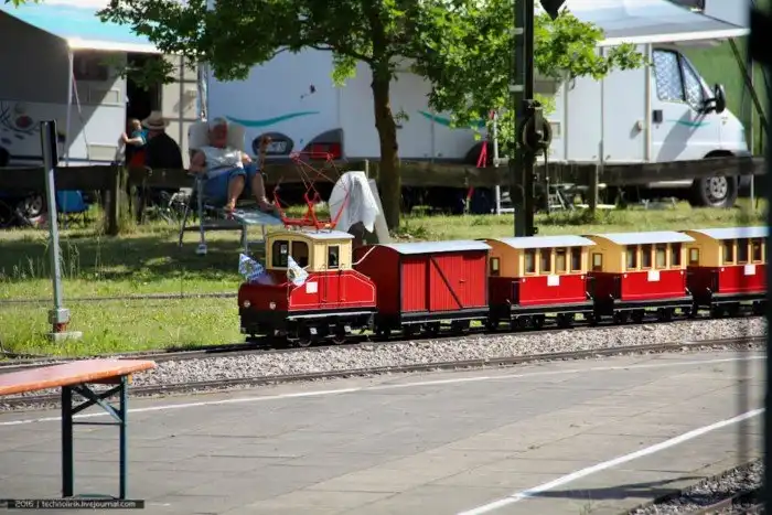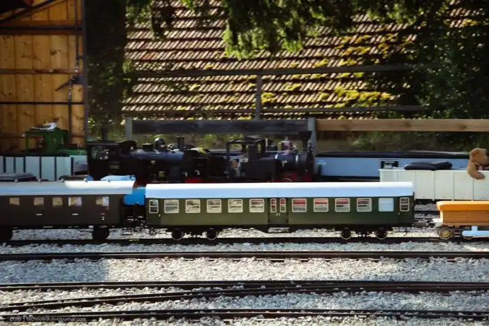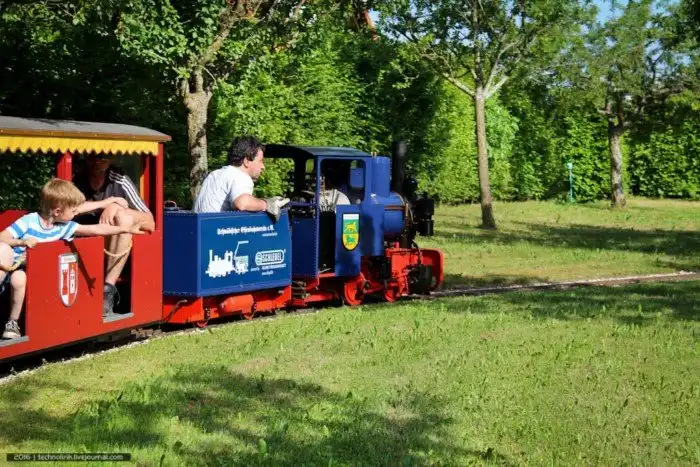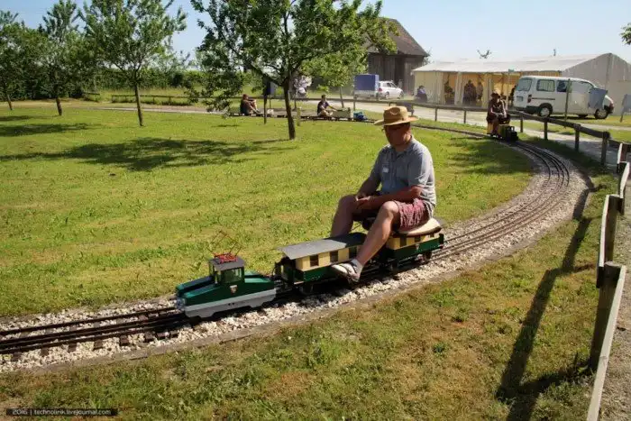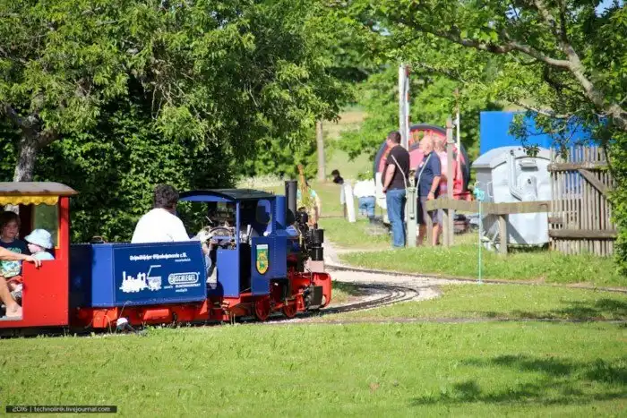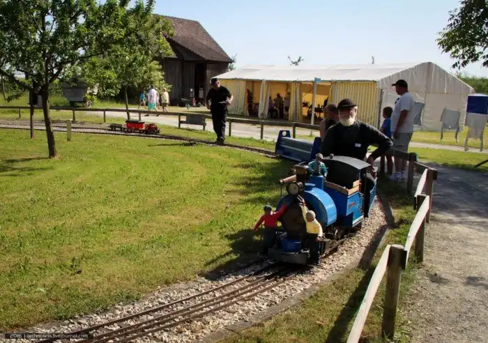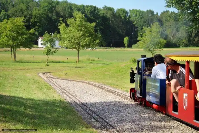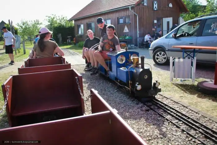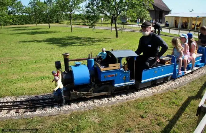 С первого взгляда может показаться, что это обычная модельная железная дорога, только чуть увеличенных масштабов. Но подножки по сторонам от вагончиков выдают, что их предназначение чуть шире, чем просто радовать глаз.