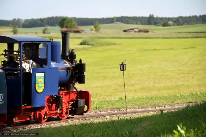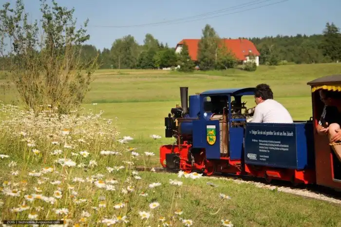 Маленький паровозик среди идиллических полей южной Германии смотрится совершенно сказочно.