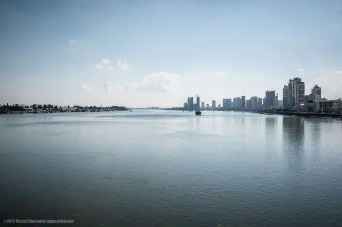 Вид из гостиницы Янгакто, второго по высоте небоскреба Пхеньяна.