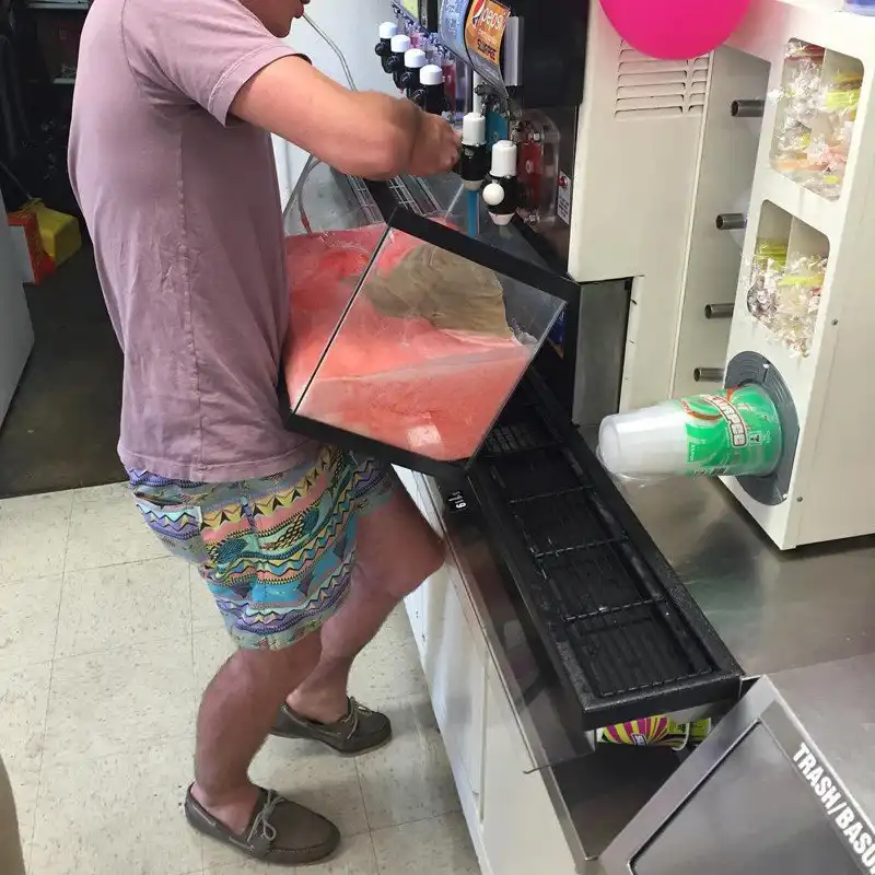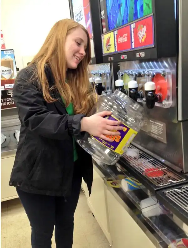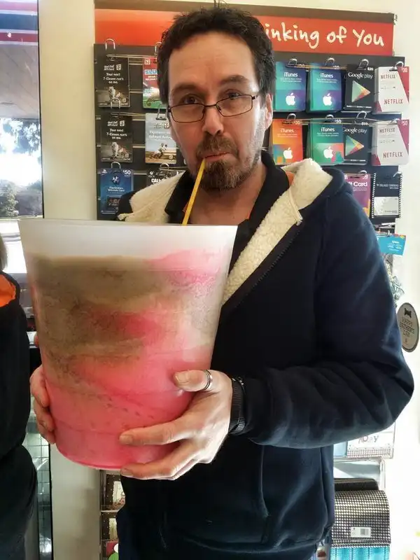 В честь 50-летия ледяного напитка Slurpee, сделанного на основе воды и фруктового сиропа, сеть американских супермаркетов 7-Eleven объявила акцию Bring Your Own Cup. В течение двух дней, 18 и 19 марта, напиток можно было брать в неограниченных количествах. За обычную цену в 1,5 доллара напитком можно было наполнить емкость любого объема, а потому любители Slurpee приходили не только с обычными бутылками и канистрами, но и с тазиками и даже унитазами.