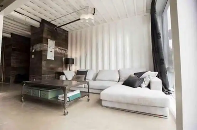 Внутреннюю часть контейнеров перед отделкой пришлось тщательно помыть и почистить.
