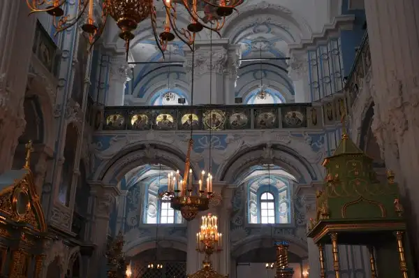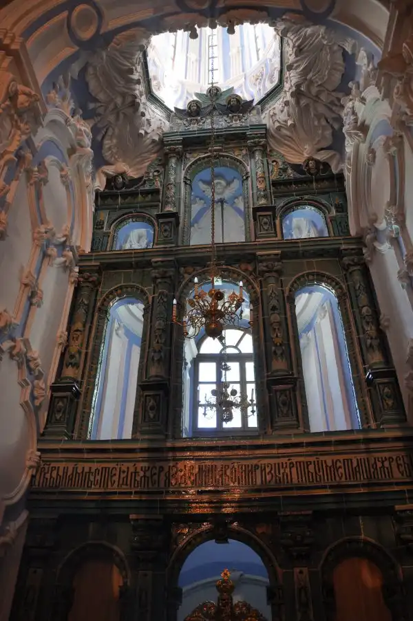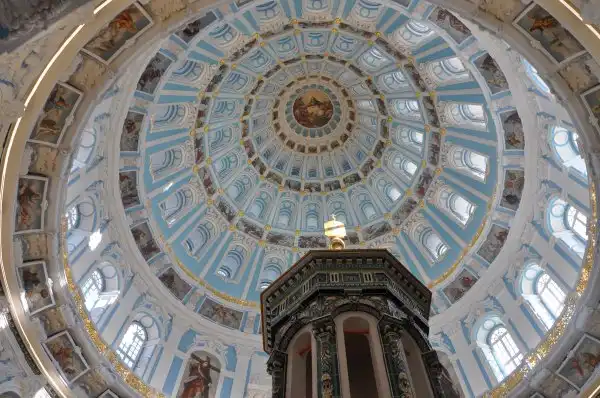 В ротонде Воскресенского собора, повторяя храм Гроба Господня в Иерусалиме стоит храм в храме – Кувуклия, отмечающая место погребения Иисуса Христа.