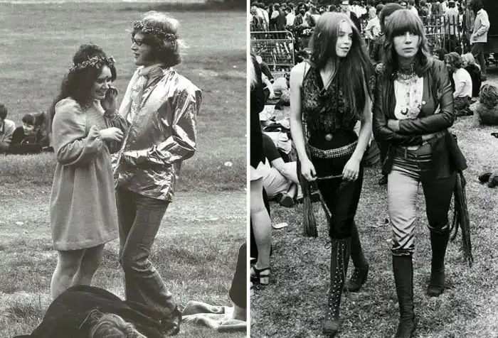 Далее предлагаем взглянуть на фотографии с рок-фестиваля Вудсток, прошедшего в конце лета 1969 года в США. Это грандиозное событие, на которое собралось более полумиллиона человек, ознаменовало переход от рок-н-ролла к року и начало сексуальной революции. Справедливости ради стоит отметить, что современная мода на откровенные наряды зародилась именно тогда.