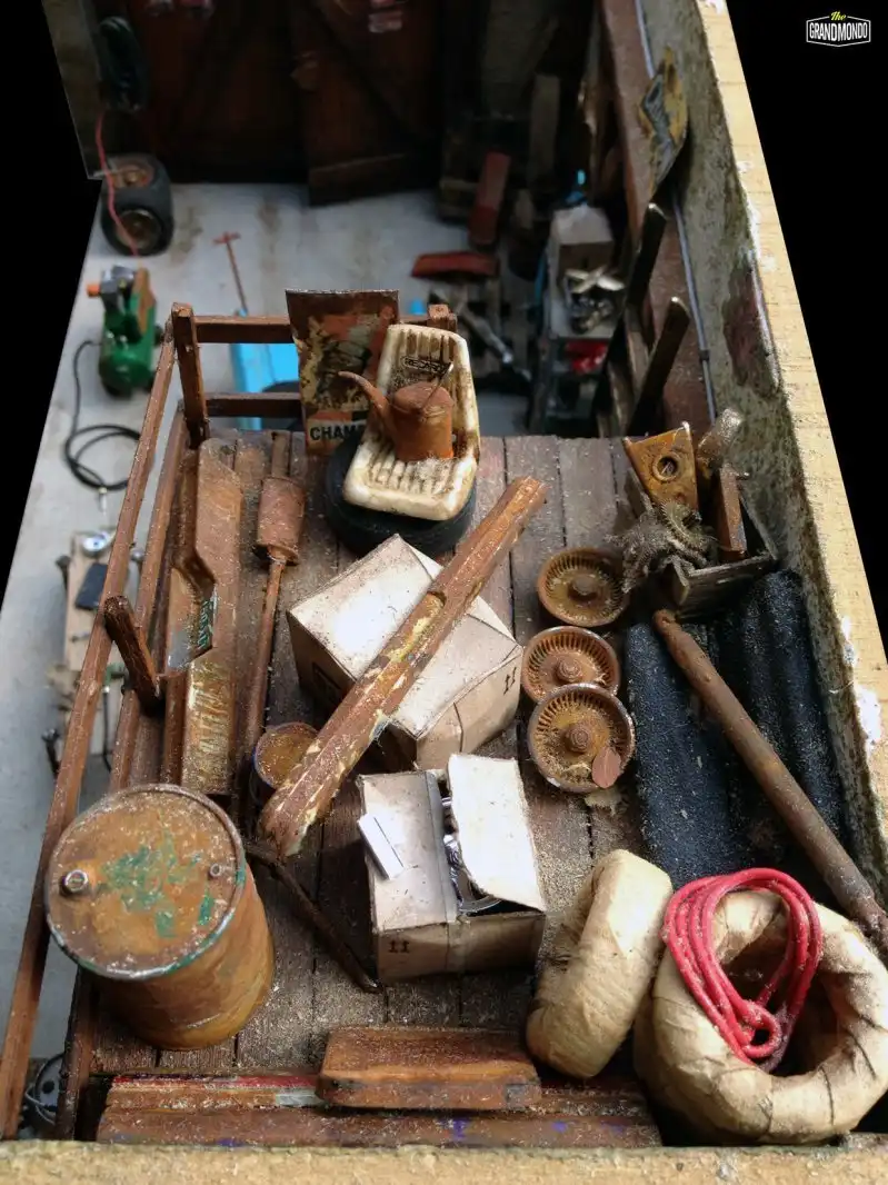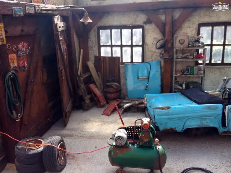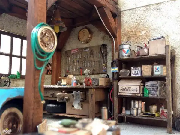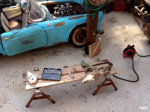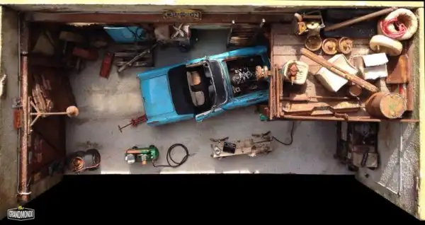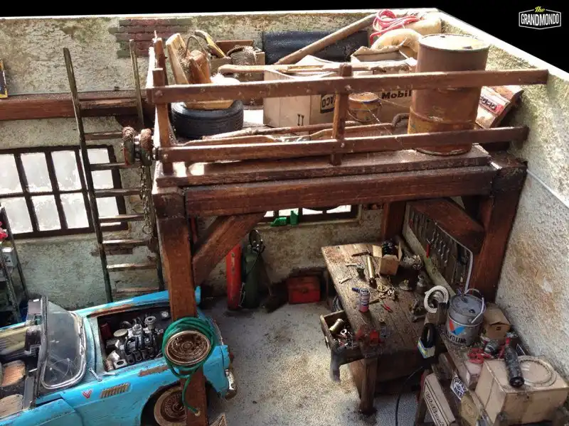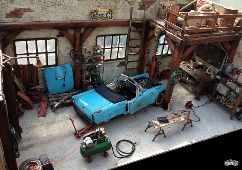 Вашему вниманию еще одна потрясающая диорама от мастера Raphael Truffi Bortoluzzi. В гараже можно видеть классический Ford Thunderbird Convertible 1955 года, ожидающий свою вторую жизнь.