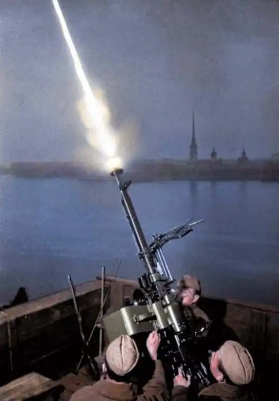 1942 год, 9 октября. Ленинград. Сержант Фёдор Коноплёв со своим расчётом отражает воздушный налёт противника