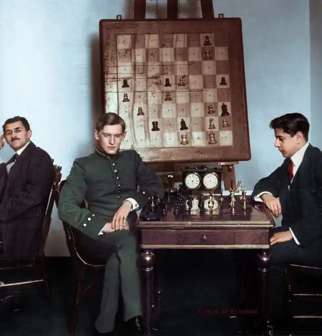 Дэвид Боуи играет в шахматы с Катрин Денёв на съёмках фильма Голод, 1983