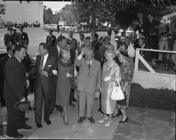 1959. Никита Хрущев прибыл на обед в студию 20-й век - Фокс в Лос-Анджелесе