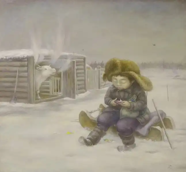 Даже зимний пейзаж не искрится и не бликует, а приглушен и тих, так же как приглушена и тиха северная природа Еравны, так же как скромен и тих характер самого художника.