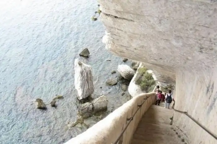 Одной из достопримечательностей острова Корсика является лестница короля Арагона в коммуне Бонифачо. Эта лестница, состоящая из 187 ступеней, высечена под углом 45 градусов в вертикальной известняковой скале. Как гласит легенда, лестницу высекли войны короля Арагона Альфонсо V в 1420 году во время осады Бонифачо. На этот монументальный труд якобы потребовалась всего лишь одна ночь, однако историки полагают, что лестница была выбита гораздо раньше монахами-францисканцами. Лестница ведет к природным источникам в пещере, а первые ее ступени появились еще в эпоху неолита, постоянно расширяясь и удлиняясь с тех пор.