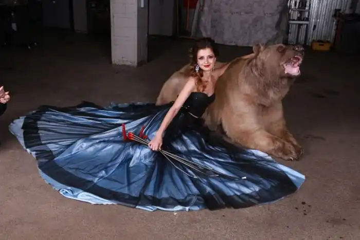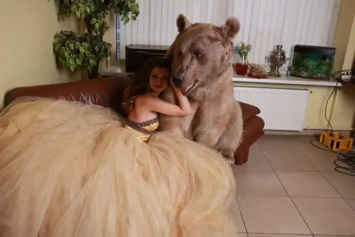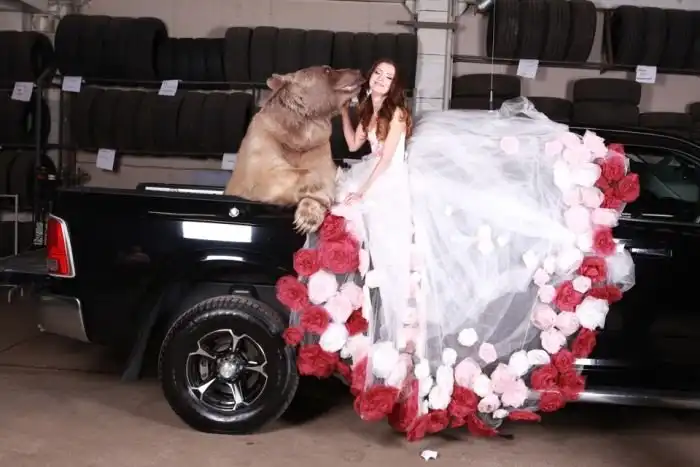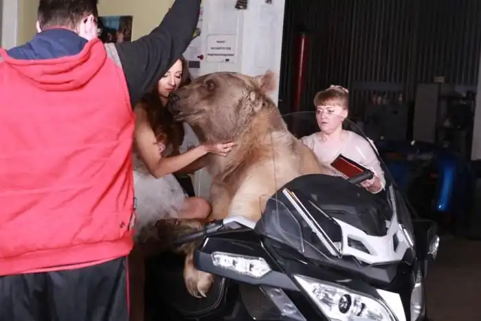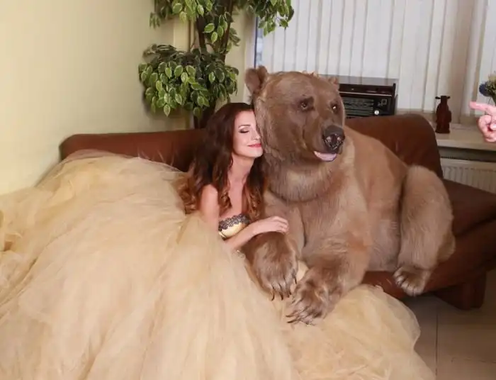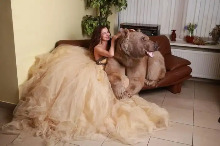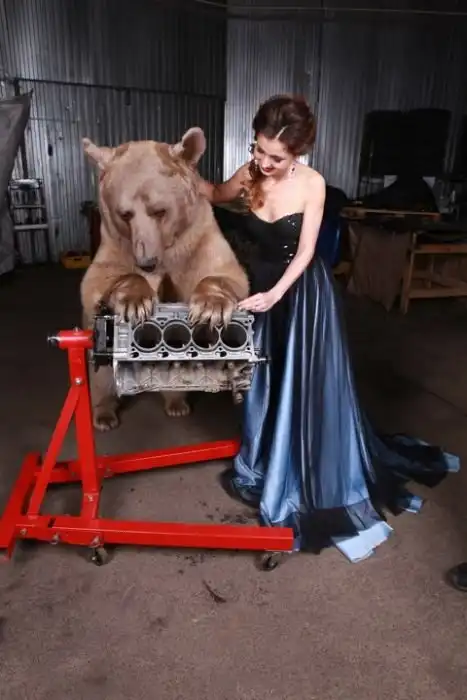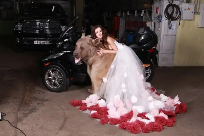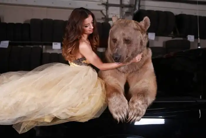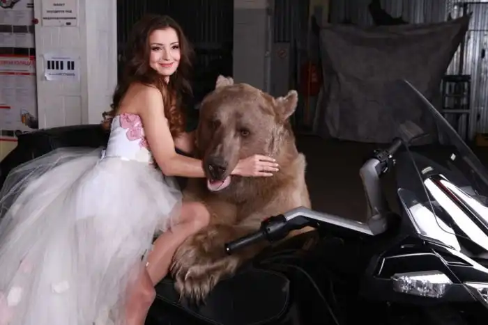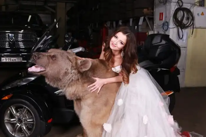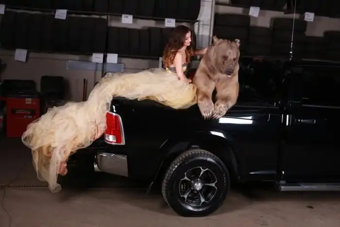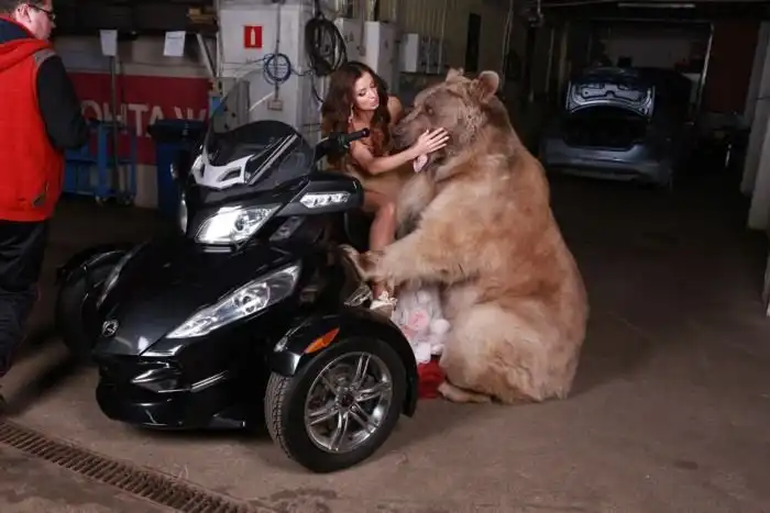 Владелица одного московского автосервиса Юлия снялась в смелой фотосессии с медведем. 28-летняя девушка, автослесарь по образованию, не нашла моделей, готовых фотографироваться с хоть и ручным, но все же хищником, а потому сама выступила в роли модели.