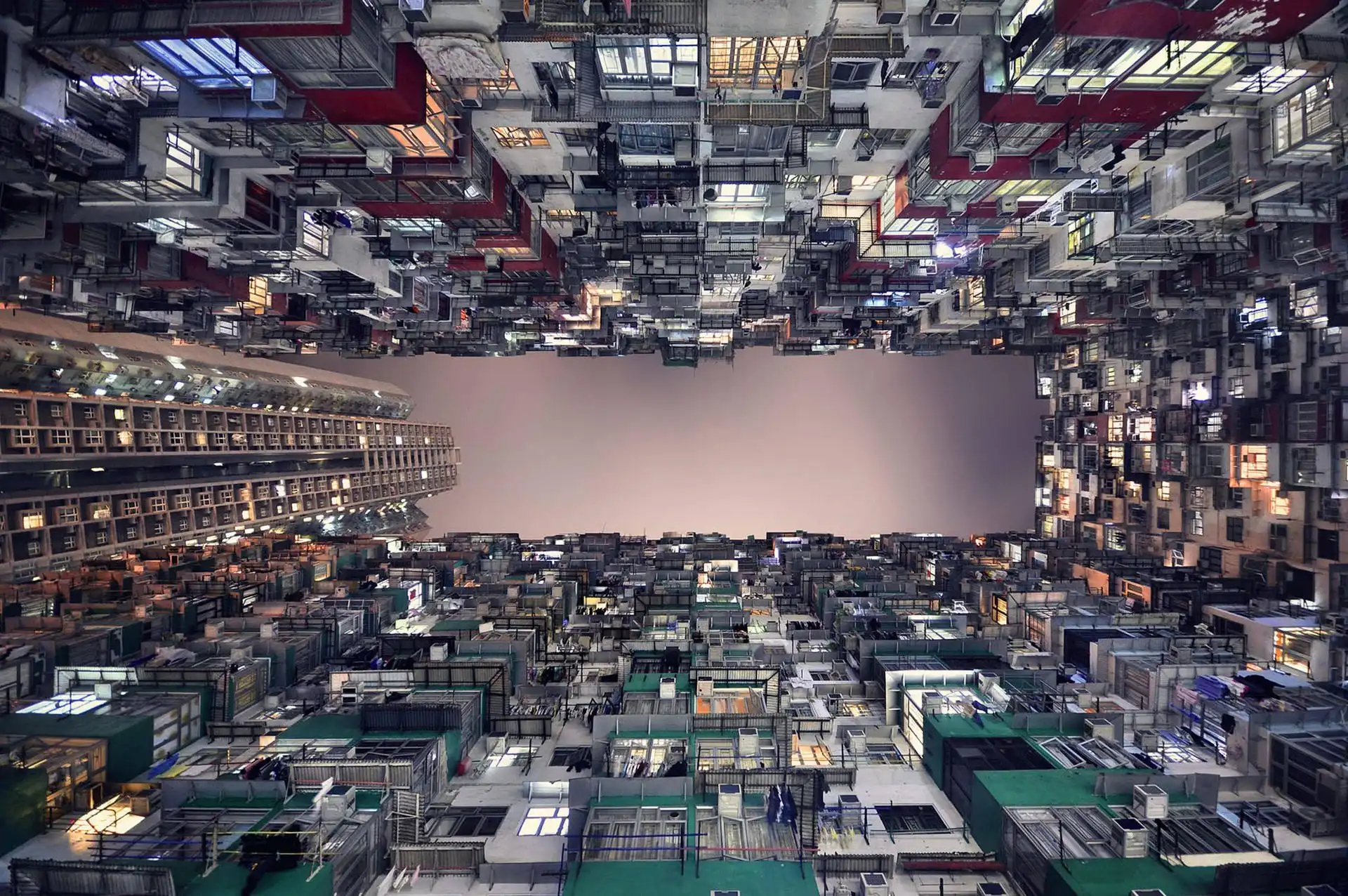 Небоскрёбы Гонконга вид снизу.