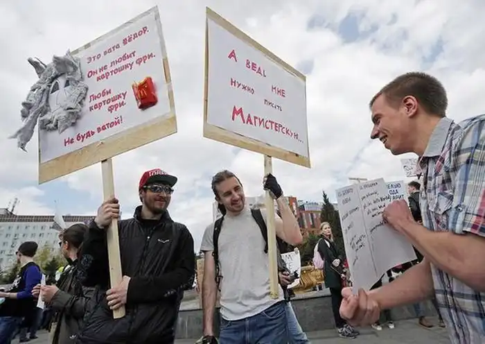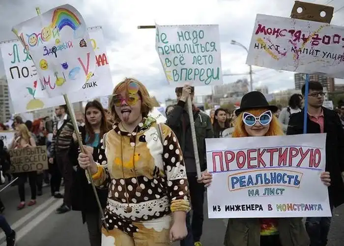 1 мая в нескольких крупных городах России и прошли альтернативные митинги, называемые Монстрацией. Отличительной чертой подобных шествий являются абсурдные и смешные лозунги, с которыми люди проходят по улицам городов. Организатор Монстраций Артем Лоскутов из Новосибирска рассказал про давление, оказываемое властями: «Нас в последние месяца полтора очень активно травят со всех сторон. Всякие разные околоправославные экстремисты, всякие депутаты, мэр с губернатором все прошлись по Монстрации, все её успели в чем-то обвинить: кто в сатанизме, кто в гомосексуализме, кто в том, что мы бандеровцы».