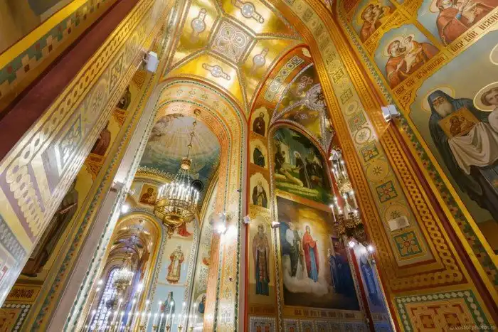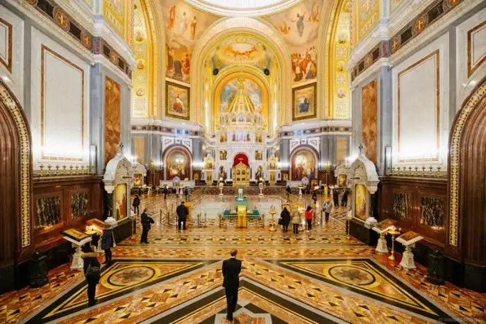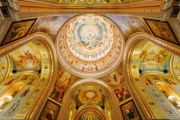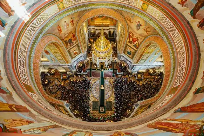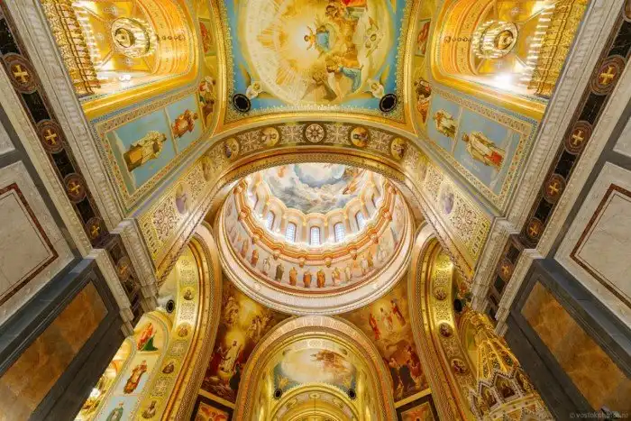 В воссоздании росписей храма принимали участие более 400 художников, а общая площадь росписей составила около 22 000 кв.м. Это примерно как площадь двух футбольных полей.