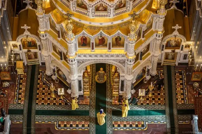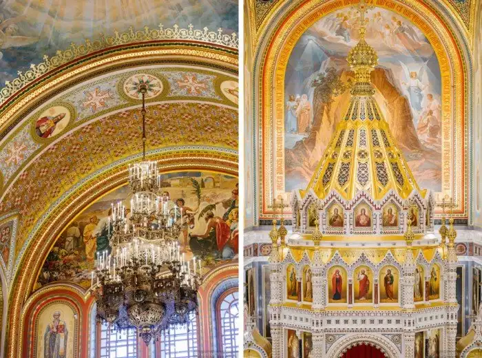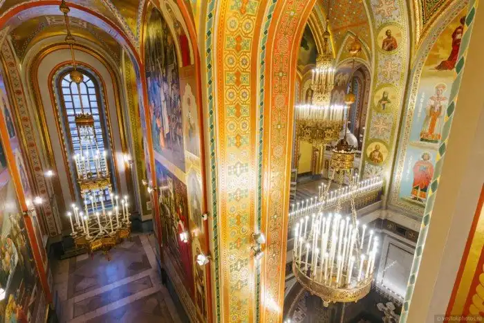 Внутреннее убранство Преображенской церкви Храма Христа Спасителя ориентировано на древнерусские традиции.