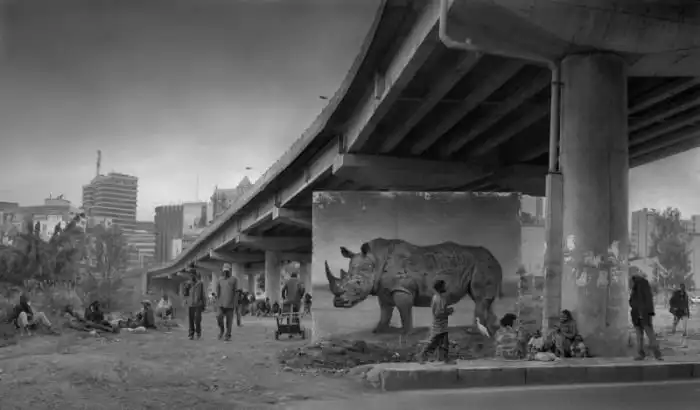 Фотограф Ник Брандт (Nick Brandt), известный своими снимками животных, в настоящий момент работает над проектом Inherit the Dust, с помощью которого он хочет показать последствия урбанизации в Восточной Африке. Из-за роста старых городов и появления новых, дикие слоны, львы, носороги и другие животные были вынуждены покинуть территории, которые некогда они считали своими. Работая над проектом, Ник стал свидетелем того, как многочисленные свалки, загрязненные реки и выбросы с промышленных предприятий уничтожают природу региона. Для создания своих фото, Ник использовал портреты животных в полный рост.
