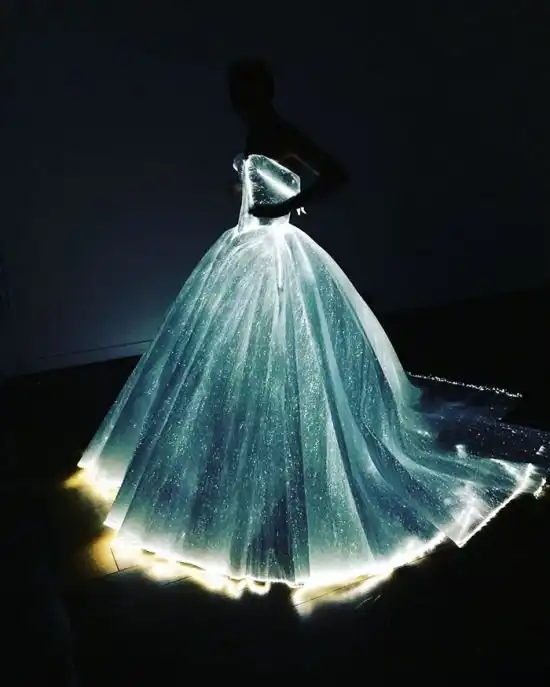 На бал в нью-йоркский музей искусств Metropolitan 37-летняя актриса явилась в уникальном платье от Зака Позена. При свете дня это платье, которое назвали «платьем Золушки», выглядит вполне обычно, но в темноте оно начинает сиять сказочным светом. Секрет заключается в том, что платье сшито из органзы и оптических волокон, светиться которые заставляют 30 мини аккумуляторов, вшитых в подол.
