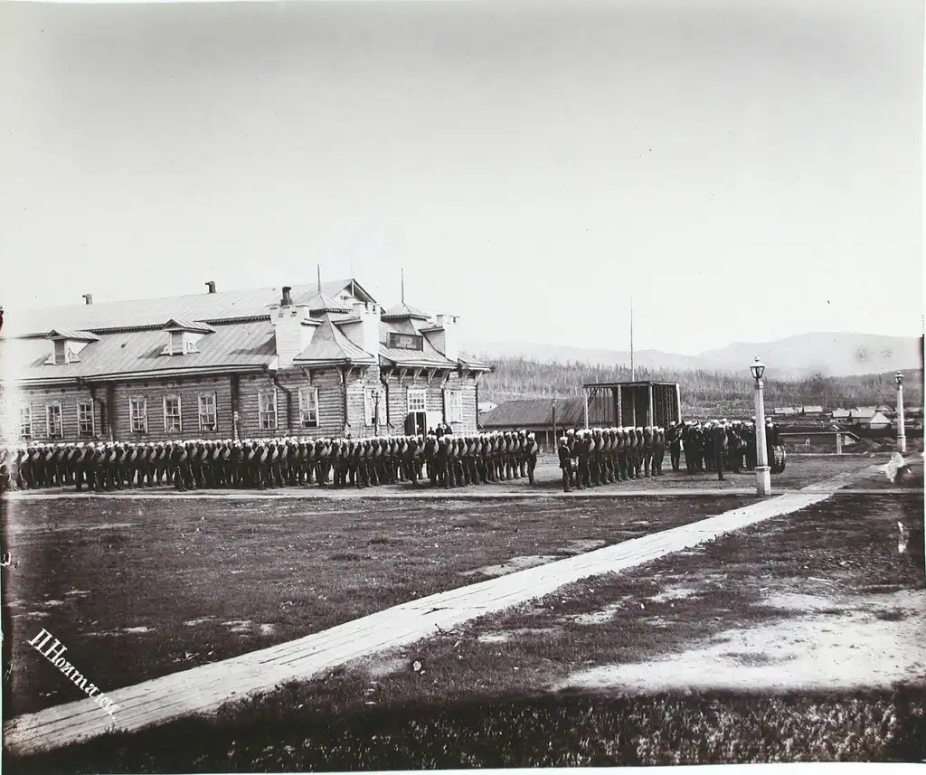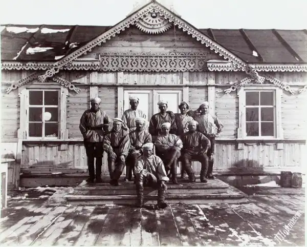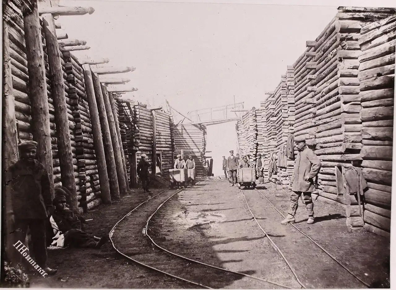 Ссыльно-каторжные внутри каменноугольного рудничного дворика.