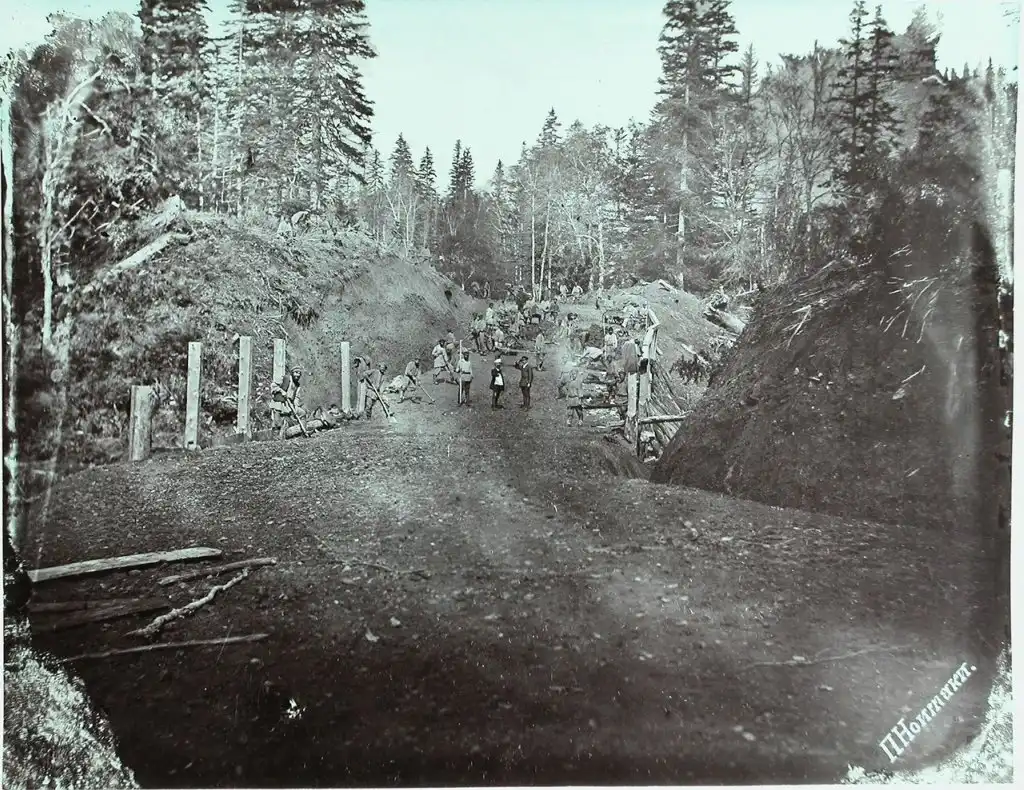 Ссыльно-каторжные прокладывают дорогу между селениями Арково-Армудан.