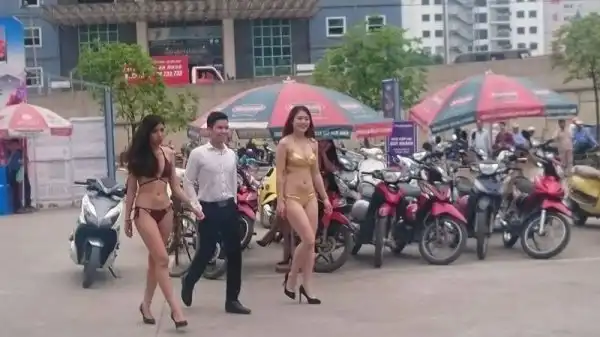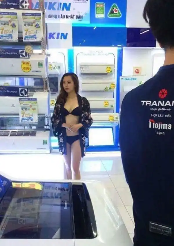 Один из вьетнамских магазинов электроники нашел отличный метод увеличения продаж товаров. Руководство попросту раздело продавщиц-консультантов вплоть до купальников. Уверен, что ни один мужик не сможет отказать полуобнаженной девушке и обязательно что-нибудь купит.