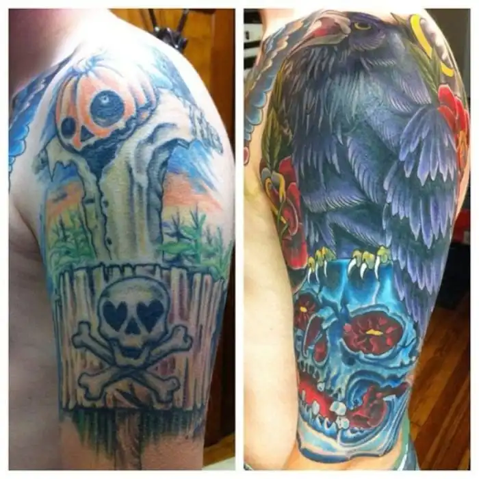 Иногда случается так, что выбранный для татуировки рисунок со временем надоедает и уже совершенно не нравится. В таком случае есть два способа - лазерное удаление или перекрытие. Именно с примерами перекрытия, как одним из способов исправления нежелательных татуировок, нас познакомит этот пост.