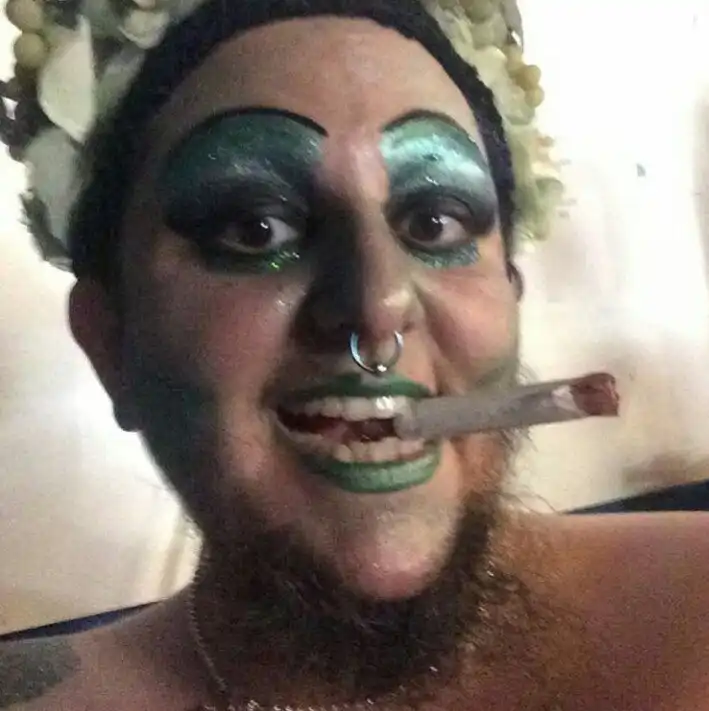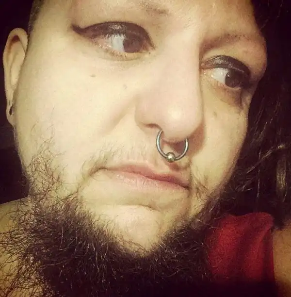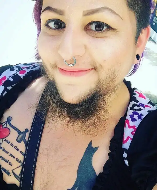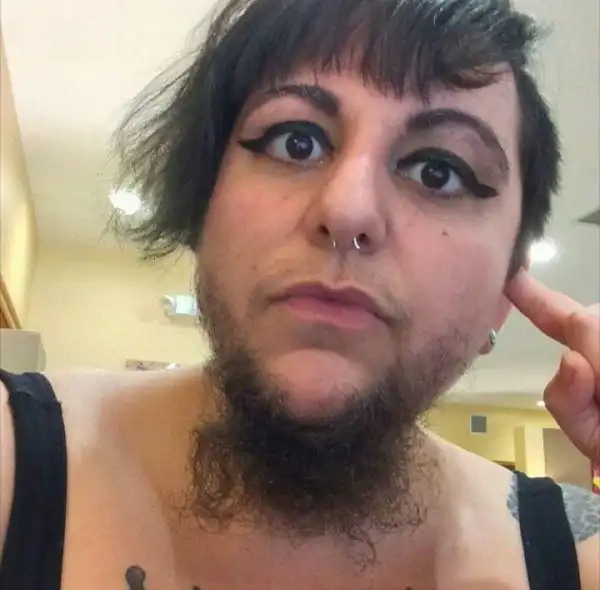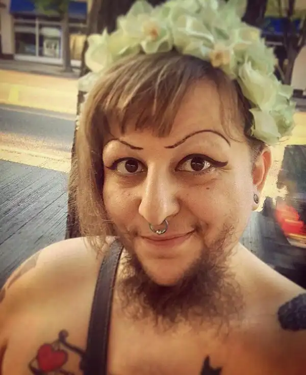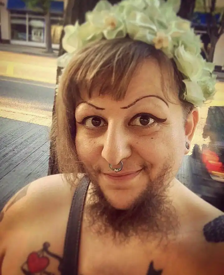 Это чудо из Сиэтла называет себя "Медвежонком" и является женщиной от рождения. Во что сложно поверить, учитывая наличие бороды. Эта дамочка - художница, музыкант и исполнительница бурлеска. Но дела идут худо. Поэтому она просит денег у всех пользователей сети и обещает щедрые вознаграждения - селфи, песенки и беседы прочую лабуду - за пару пожертвованных баксов.