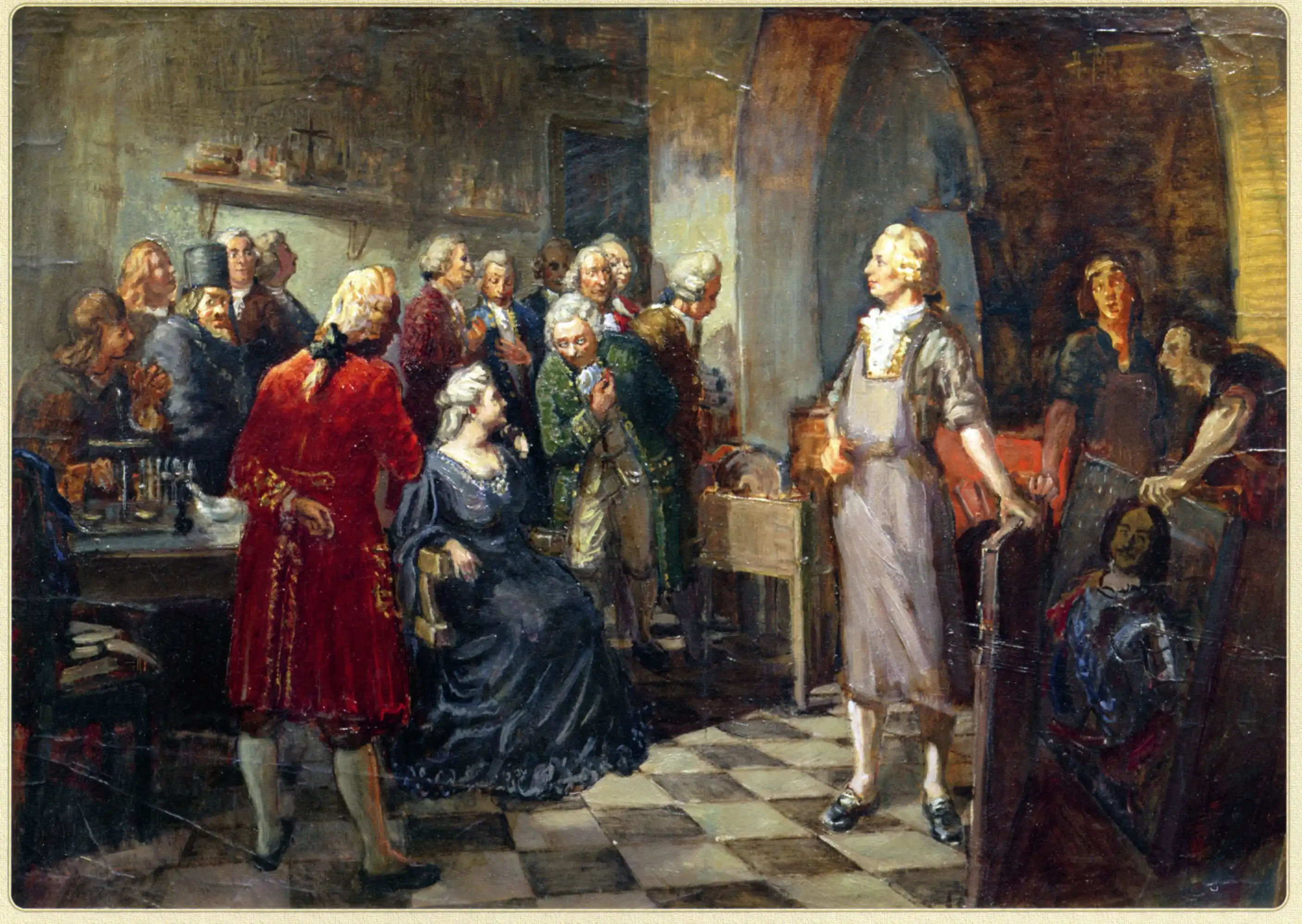 Посещение императрицей Елизаветой Петровной мастерской М.В. Ломоносова