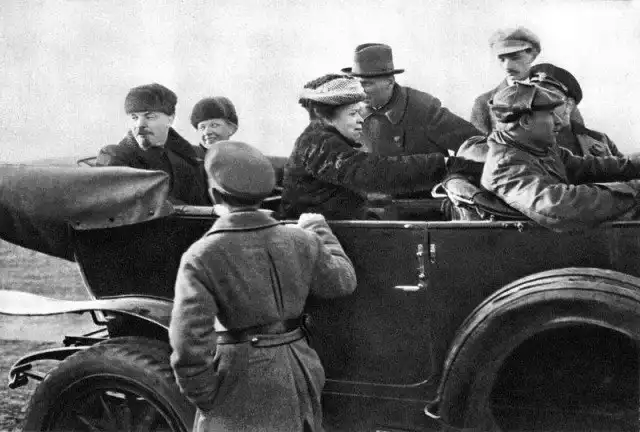 1918г. В.И.Ленин, Н.К.Крупская и М.И.Ульянова в автомашине перед отъездом с Ходынского поля после военного парада. Москва, 1 мая.