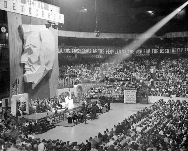 ХХ сьезд КП США. Чикаго, 1939 год. Над трибуной портрет Линкольна. По бокам - до боли знакомые лица...