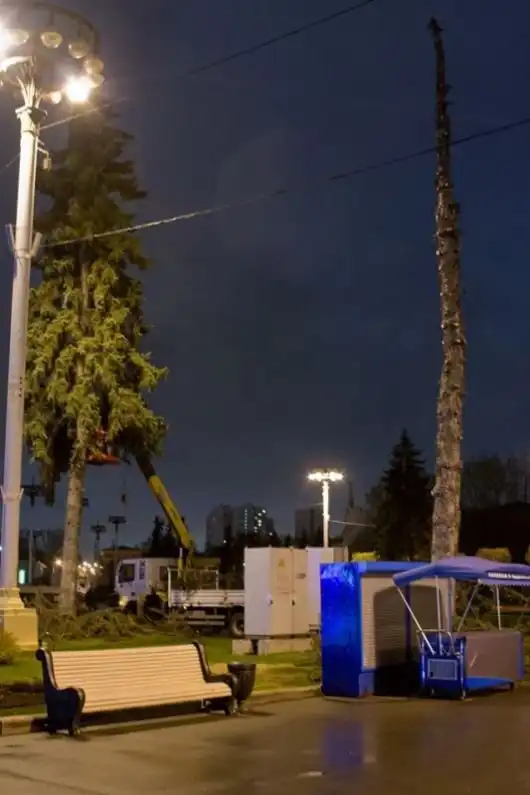 В Москве с исторической аллеи ВДНХ исчезли голубые ели, которые были посажены более 50 лет назад. Массивные хвойные деревья могли расти и дальше, но их решили заменить на экзотические карликовые деревья с квадратными кронами. Пилили деревья ночью, наверное, для того, чтобы никто не заметил. Ели оказались на редкость ровными и не имели никакой гнили. Просто старые, но еще здоровые деревья надоели некому Андрею Коровянскому, руководителю компании, отвечающей за благоустройства многих столичных скверов и парков. Что осталось на месте голубых елей, смотрите далее.