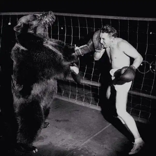 Официальный боксерский поединок между медведем и человеком, 1949 год. Медведь выиграл.