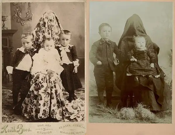 Матери маскировались под стулья или шторы, чтобы можно было держать своих детей во время их фотографирования. XIX в