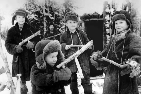 1944 год. Партизанский лагерь. Дети играют в войну. Вторая мировая.