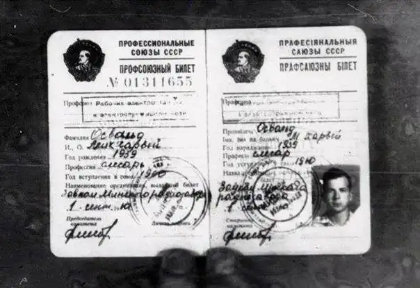 Профсоюзный билет слесаря Минского радиозавода Ли Харви Освальда.