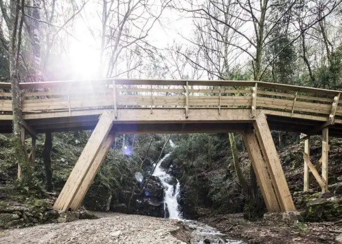 Особыми интересными местами пешеходных дорожек является витая лестница, которая ведет к вершине огромного холма, обеспечивая панорамный вид на местность, а также чрезвычайно узкий деревянный мост, который перекинут через реку. Он окружен парящими скалами и обильной естественной растительностью.