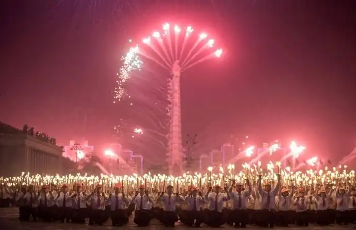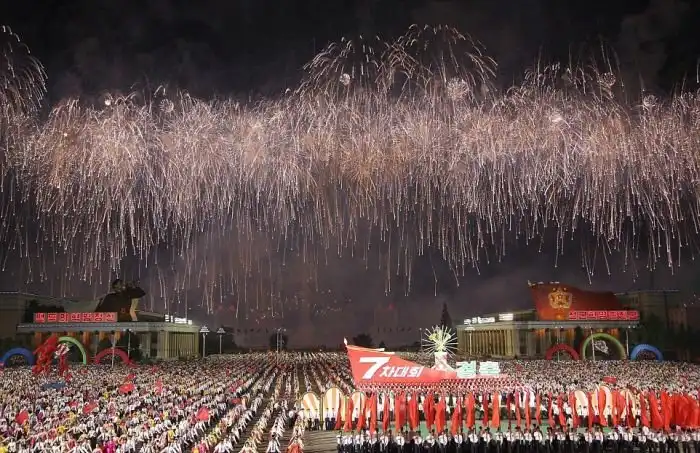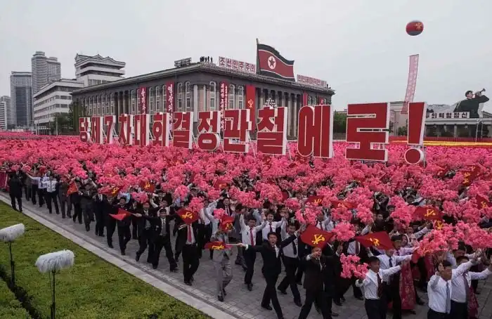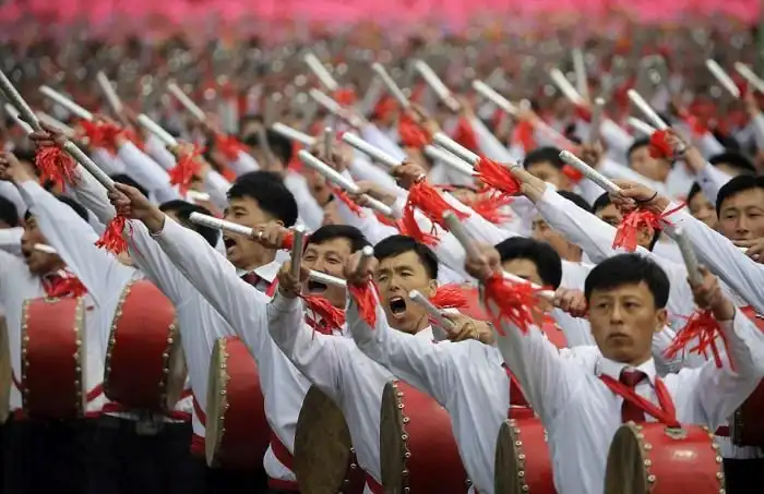 По случаю первого за 36 лет съезда Трудовой партии Кореи в Пхеньяне на площади Ким Ир Сена устроили грандиозный парад, участие в котором приняли сотни тысяч жителей страны. За яркими представлениями с участием танцоров и акробатов наблюдало высшее руководство КНДР во главе с Ким Чен Ыном. Как проходил парад, покажут фото из этого поста.