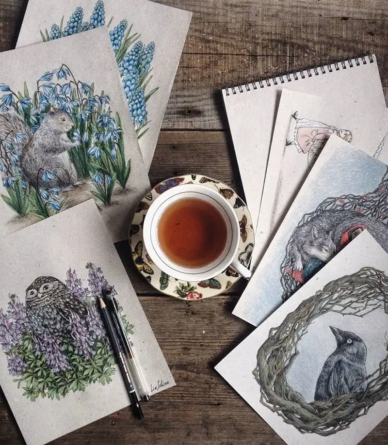 Российская художница Лиа Селина уже давно занимается компьютерной анимацией, но лишь после рождения дочери она начала рисовать свои сказочные иллюстрации. Вдохновение Лиа черпает в природе - цветах, деревьях, птицах, ветре и воде. Каждое время года дарит художнице новые идеи. И, конечно, она очень любит сказки.