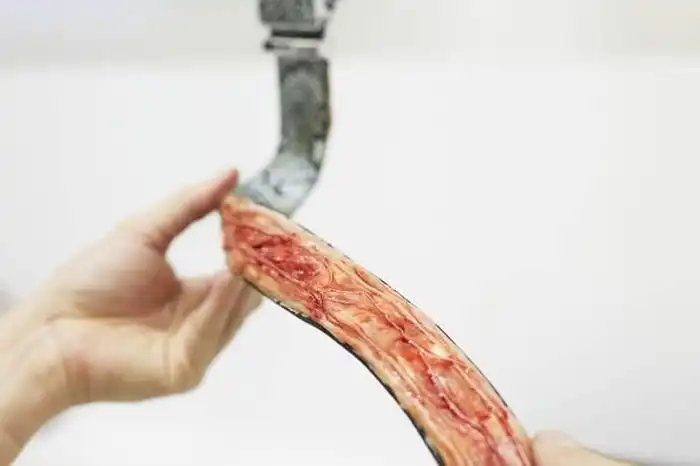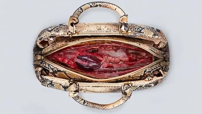 В одном из крупных торговых центров Бангкока, Таиланд, открыли необычную выставку изделий из кожи. Выставка была замаскирована под обычный магазин элитных товаров, однако внутри этих товаров клиентов ждали неприятные сюрпризы. Организаторы выставки решили напомнить, что за каждым изделием из кожи стоит смерть одного или нескольких животных, поэтому внутрь женских сумочек, кожаных курток и прочего они поместили окровавленные ткани и внутренние органы животных. Быть может такими методами людям удастся напомнить, что пока они будут покупать подобные товары, убийства животных не прекратятся. Осторожно, фото не из приятных.