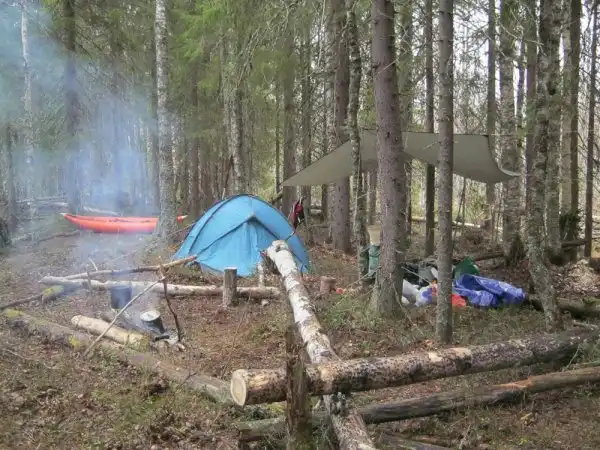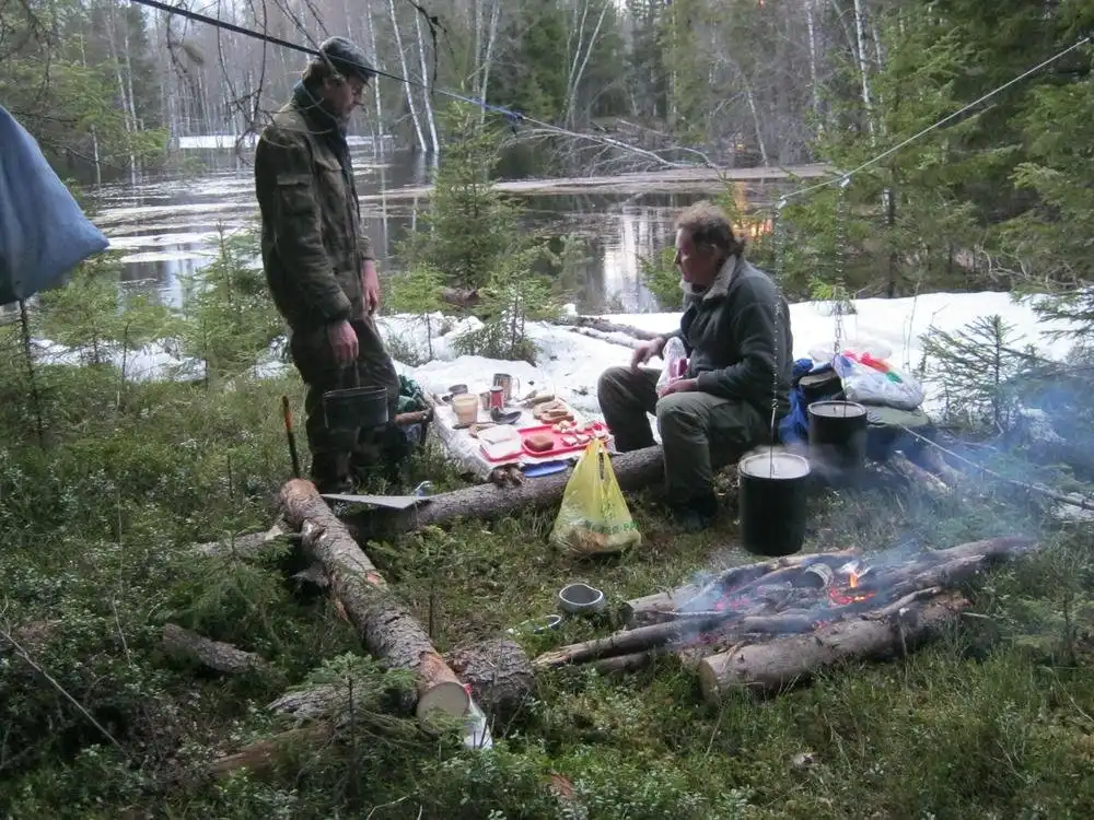 Удалось найти довольно неплохое место для стоянки. Разбили лагерь, поужинали и легли спать.
