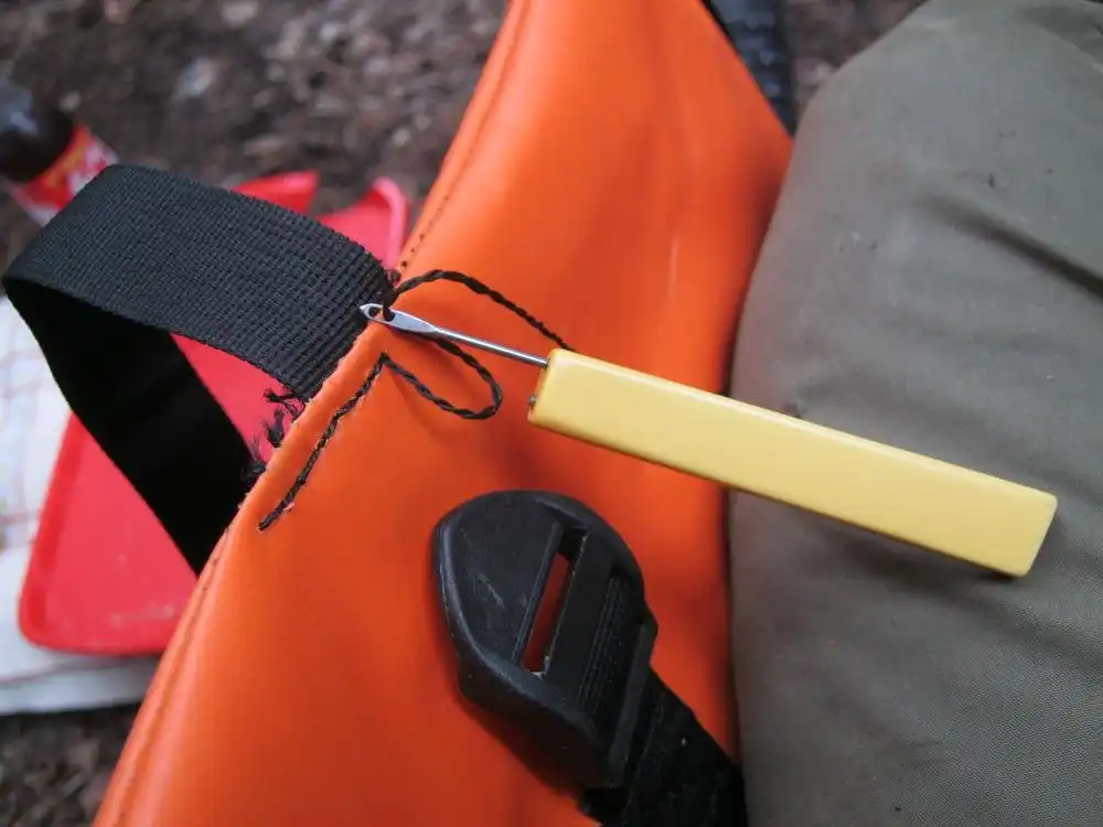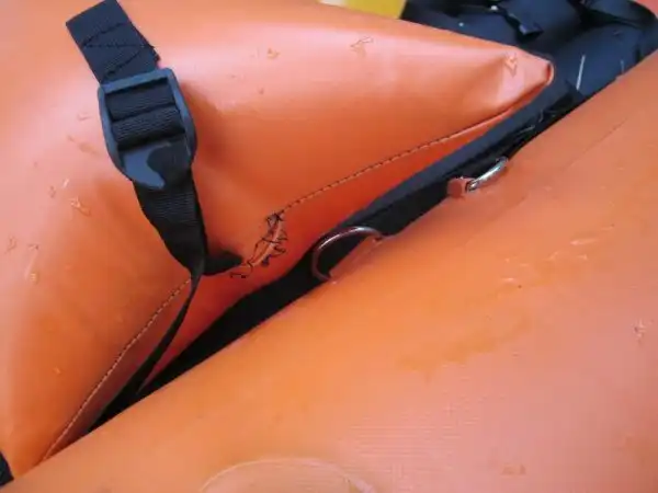 К слову, если перевернуть пустую лодку легко, то груженую - не так-то просто. Поэтому на Спорте я использую специальную переворотную стропу, которая выходит из отверстий самоотлива, образуя удобную ручку с каждой стороны дна. Этих ручек и бедренных упоров более чем хватает, чтобы удерживать лодку, поэтому я снял штатную обвязку и больше ее не использую.