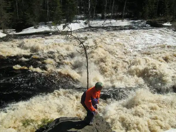 В ночь с 30 апреля на 1 мая мы приехали на станцию Райконкоски. Чтобы добраться до места будущей стоянки, нам нужно было пройти по железнодорожным путям и пересечь мост. Было темно, но по звуку было слышно, что ниже моста - довольно серьезный порог. Это был порог Райконкоски, или Мостовой-1.