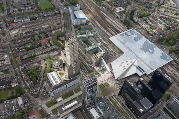 Нидерландское архитектурное бюро MVRDV построило гигантскую лестницу-инсталляцию в честь 75 годовщины реконструкции исторического центра Роттердама после Второй мировой войны. 180 ступеней ведут на крышу исторического здания Groot Handelsgebouw, откуда открывается потрясающий панорамный вид на город. В первый день открытия на лестнице успело побывать почти 8000 человек!