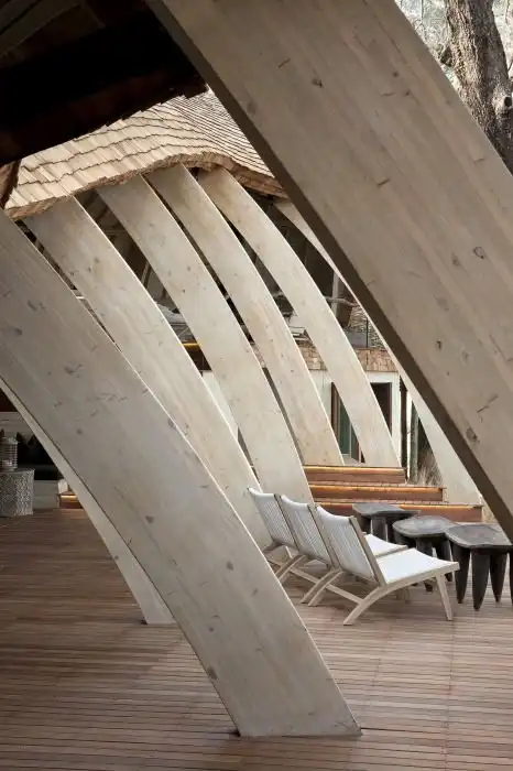 Этот уникальный отель находится в Ботсване и создан для тех, кто хочет почувствовать абсолютное единение с дикой природой. Отель находится посреди одного из заповедников и поражает своими нестандартными решениями, которых вы не встретите ни в одном другом отеле мира.