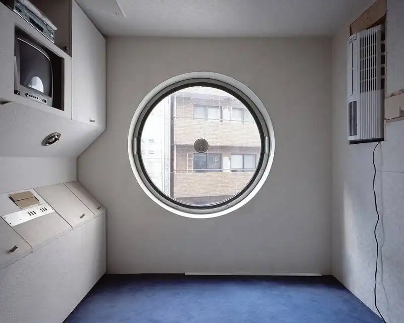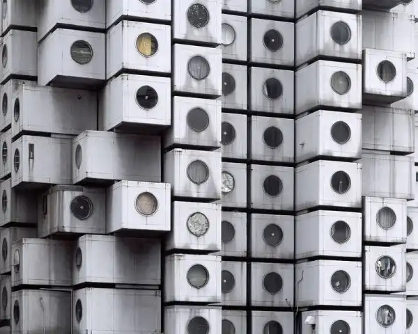 Башня-капсула «Накагин» была построена в 1972 году по проекту японского архитектора Кисе Курокава. Здание является примером японского метаболизма — движения в архитектуре и градостроительстве, появившегося в 1950-х годах в противовес функционализму. Для зданий в стиле метаболизма характерна кажущаяся незавершенность и открытость структуры для «диалога» с меняющейся городской средой. Японский фотограф Норитака Минами (Noritaka Minami) четыре года снимал построенное в токийском районе Гинза здание, состоящее из 140 капсул-модулей, которые в разных комбинациях сосредоточены вокруг двух несущих столбов. Размер каждого модуля 2,3×3,8×2,1 метров, они крепятся к опоре всего четырьмя болтами. Высота дома — тринадцать этажей.