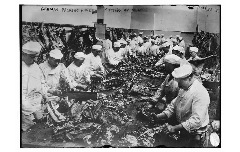 14. Процесс разделки мяса на одном из немецких рынков (1915 год)