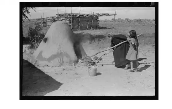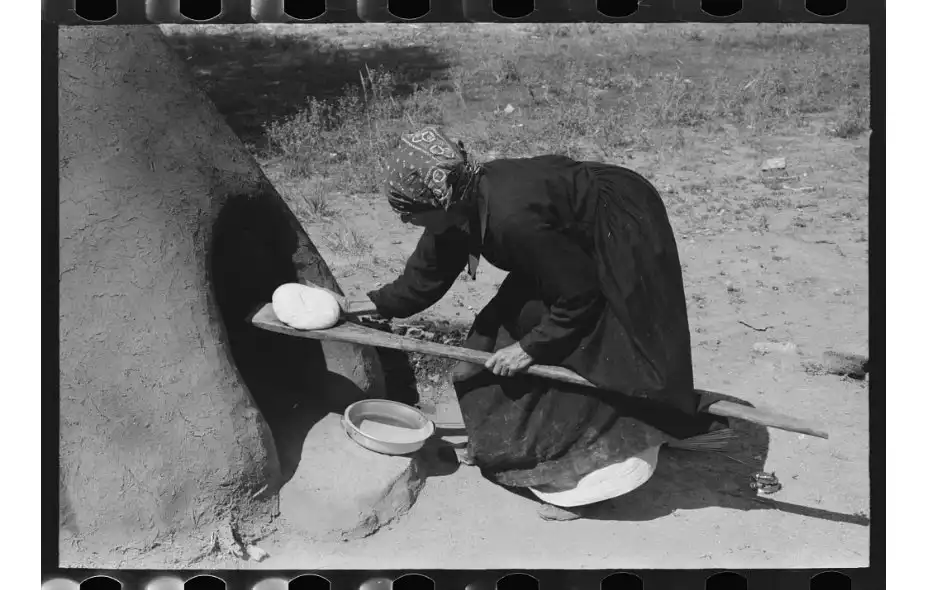 5. Американка печет хлеб в уличной печи (США, штат Нью-Мексико, 1939 год)