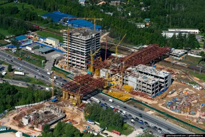 Строительство мультимодального транспортного узла (хаба) — центрального входа будущего инновационного города «Сколково». Сюда скоростные электрички должны начать ходить от Белорусского вокзала с остановкой в Москва-Сити.