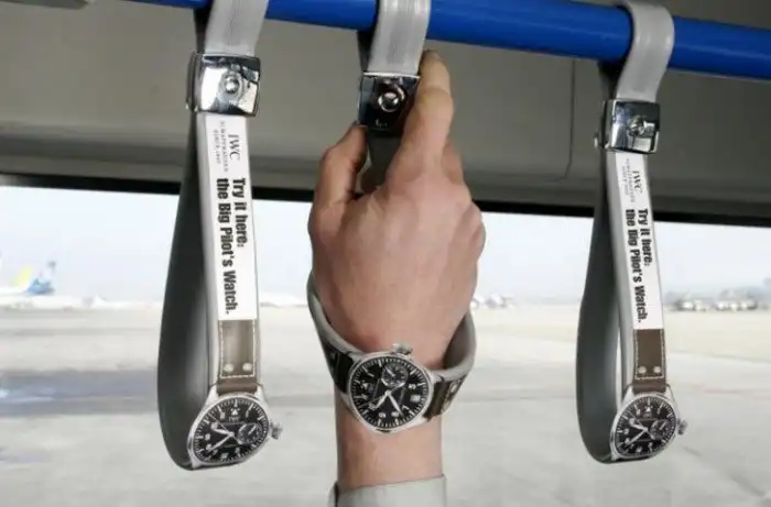 Швейцарский часовой бренд IWC рекламирует свои часы Big Pilot Watch, позволяя их примерить вот таким образом